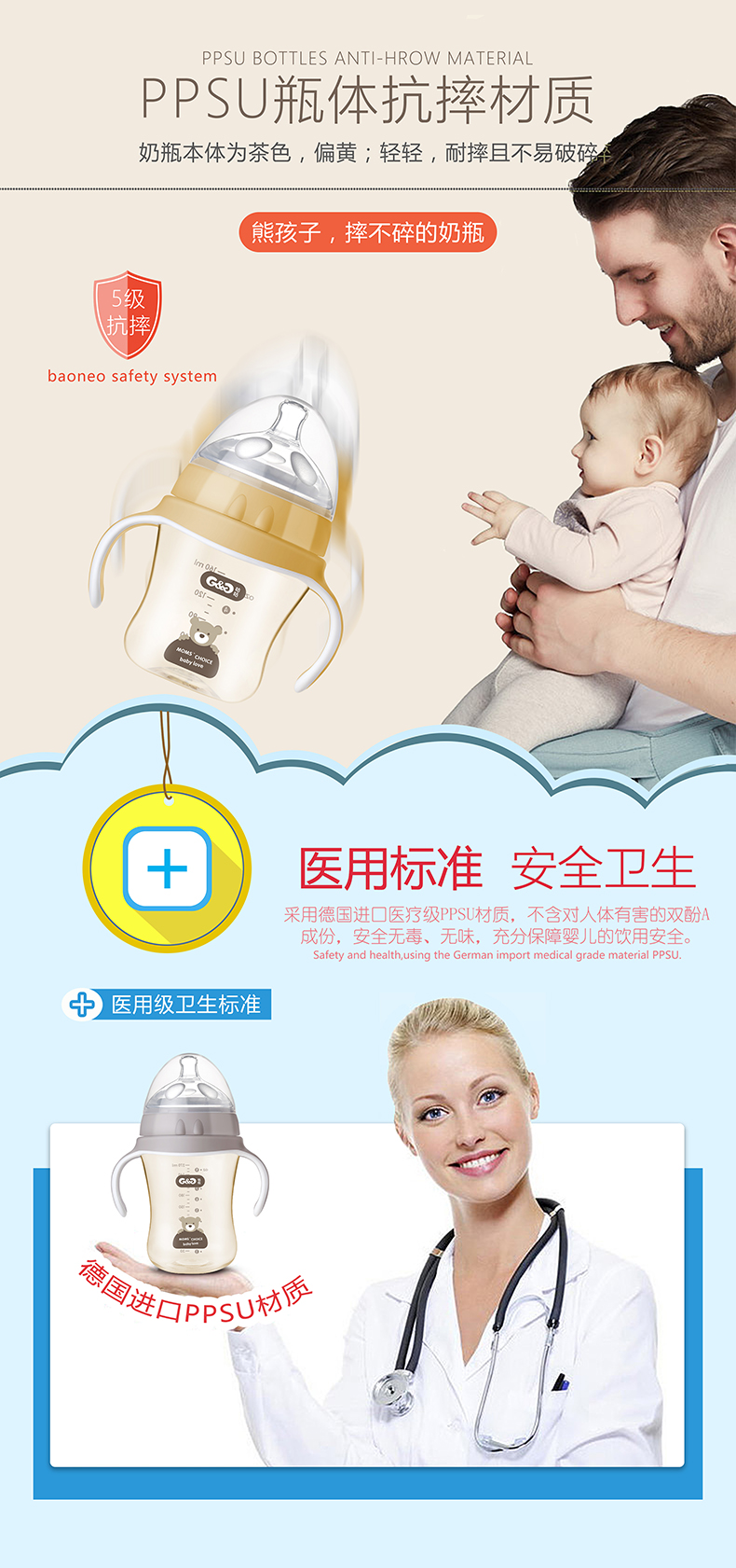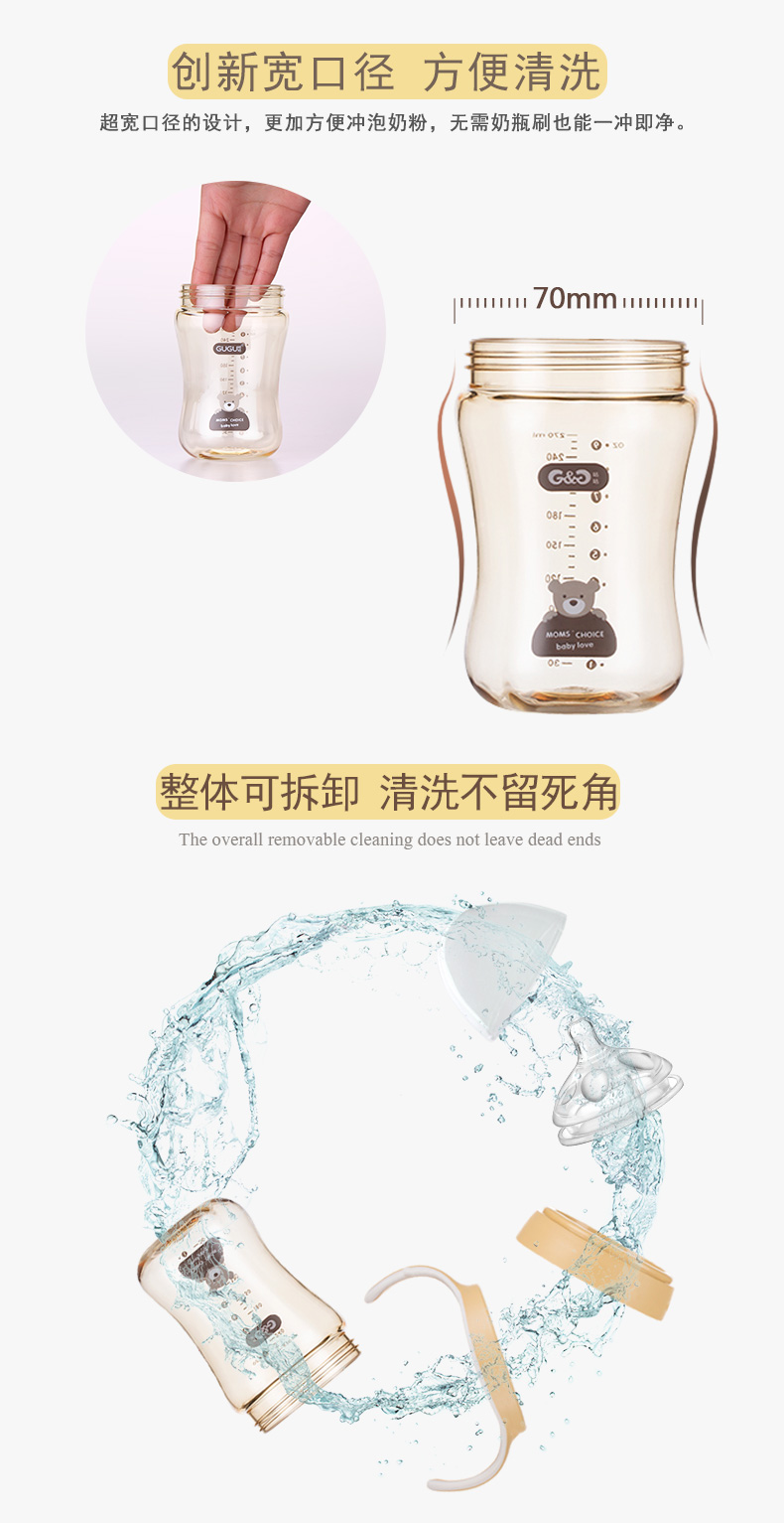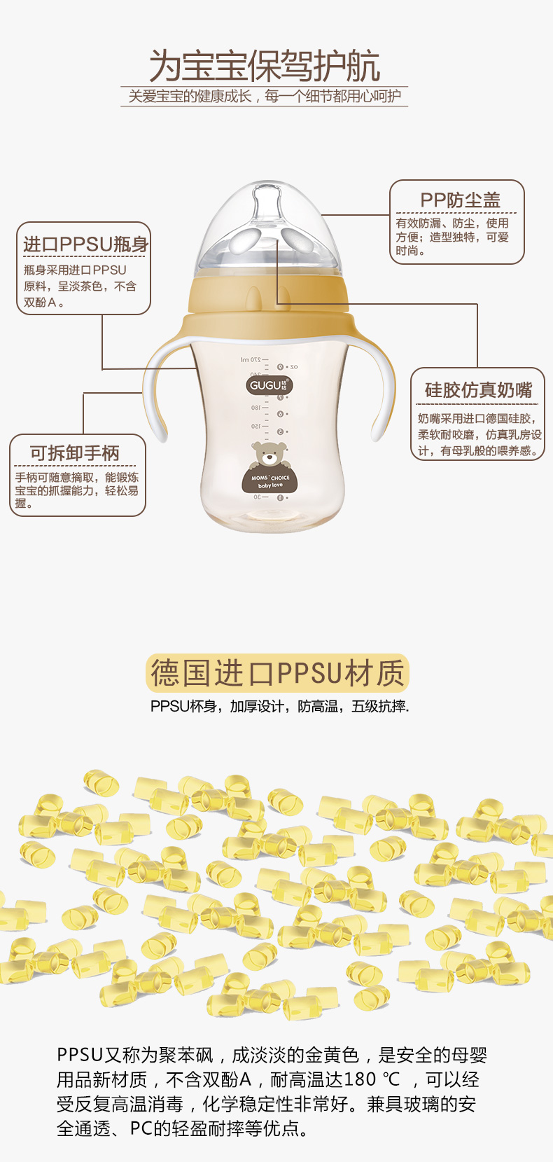 顏 色:都市灰/典雅黃/簡(jiǎn)約白      材 質(zhì):PPSU(奶瓶瓶身呈淡茶色)